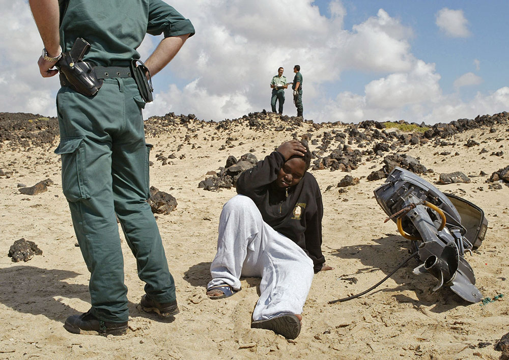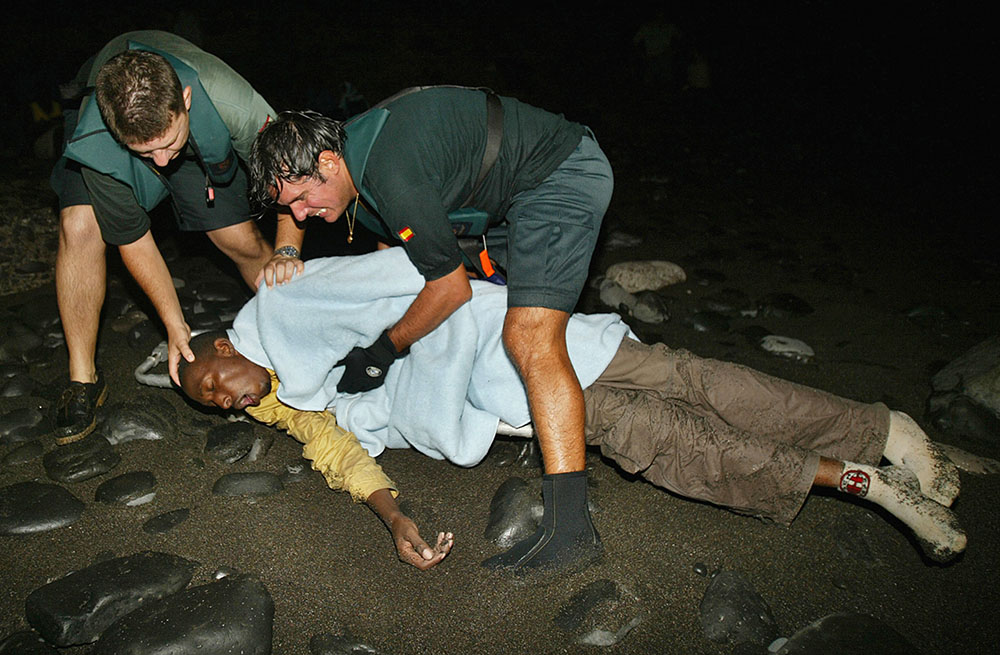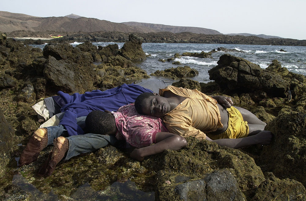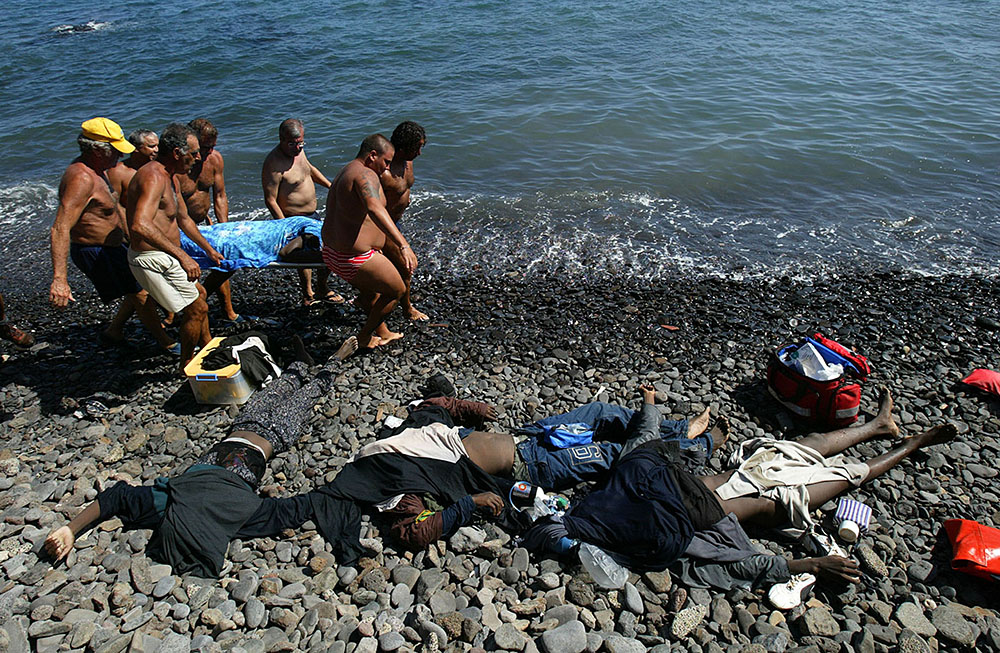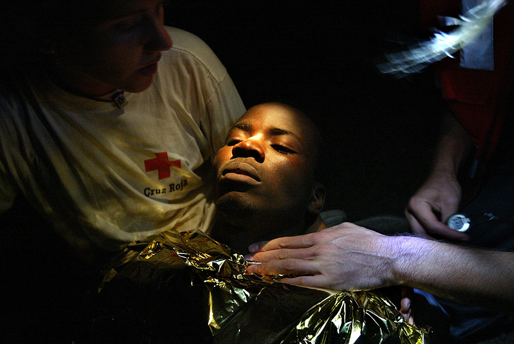 Over the last few years, I have been documenting the plight of thousands of people who risk their lives trying to reach the coasts of the Canary Islands, where I live, and I have continued to bear witness to the human tragedy which unfolds with striking regularity. The difficult voyage begins when they leave their countries of origin, usually Western Africa countries, devastated by hunger, war and exploitation. Even before reaching the African coast, many people die while crossing the desert. The sad news of their plight only becomes known through the testimony of relatives or companions who had better luck in their journey. It takes years for some people to reach the stage of setting off to cross the hundred kilometers of open sea that separate the African continent from the Spanish islands. They sail in fragile makeshift boats, less than six meters long. The majority of these vessels are intercepted and/or rescued by Spanish coast guard patrols or other rescue ships, though some overloaded makeshift boats capsize in the middle of the ocean. Still others become lost, and their boats stay adrift with the occupants condemned to a slow death if they are not found in time. Thousands of human beings feel obliged to carry out this dangerous journey, imposed by a cruel European filter.