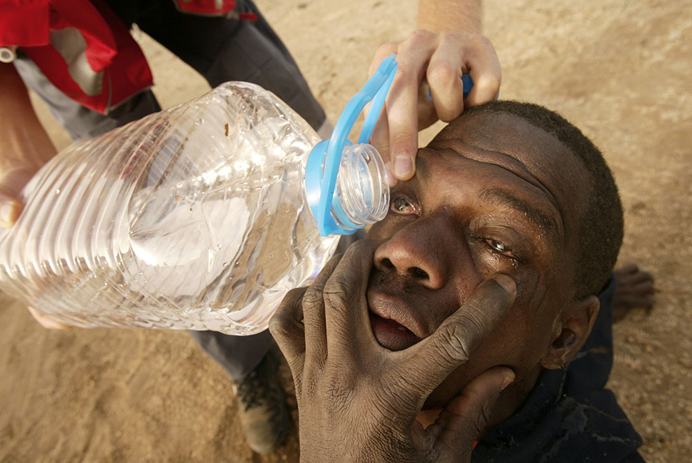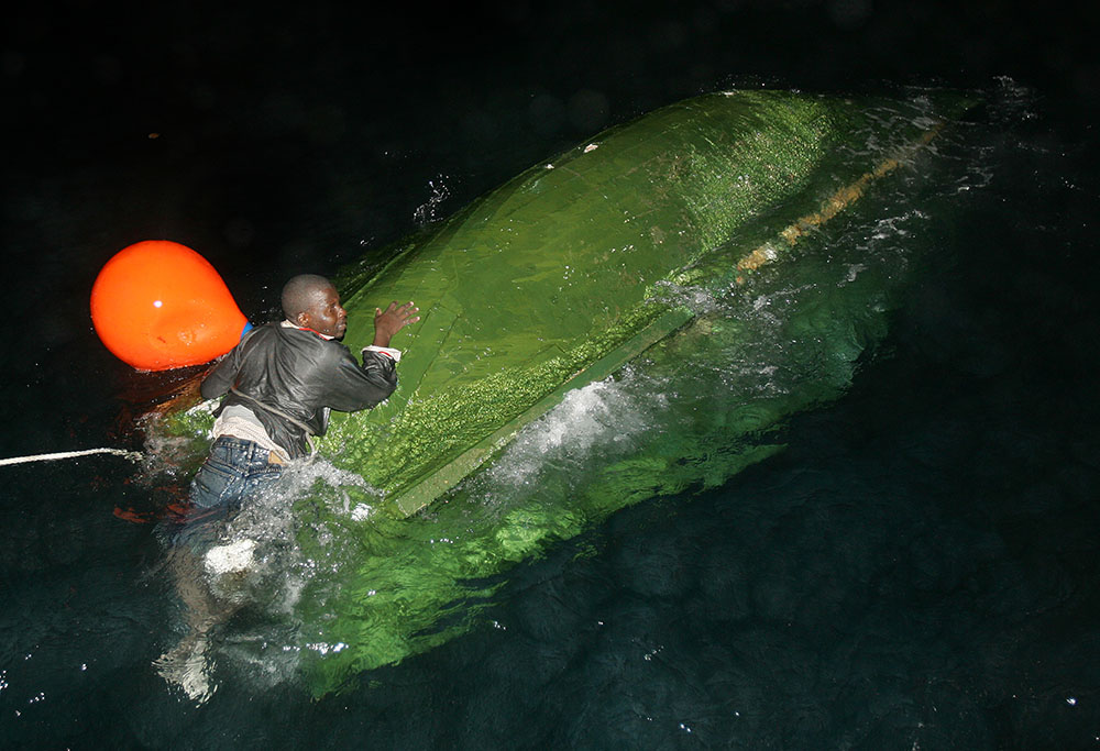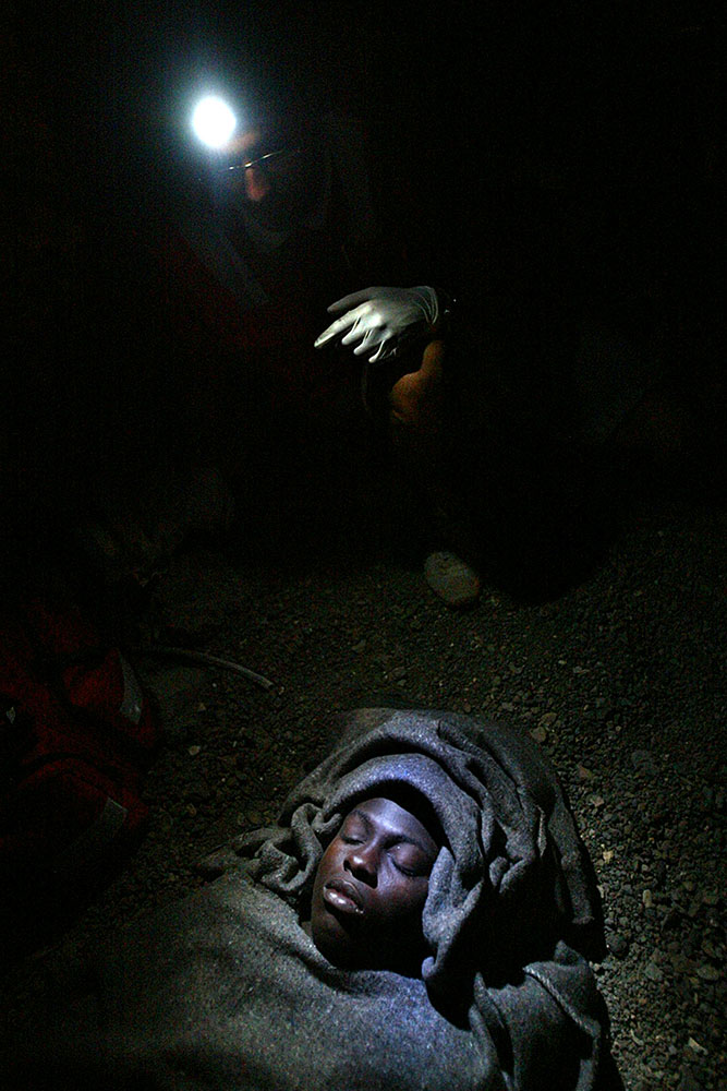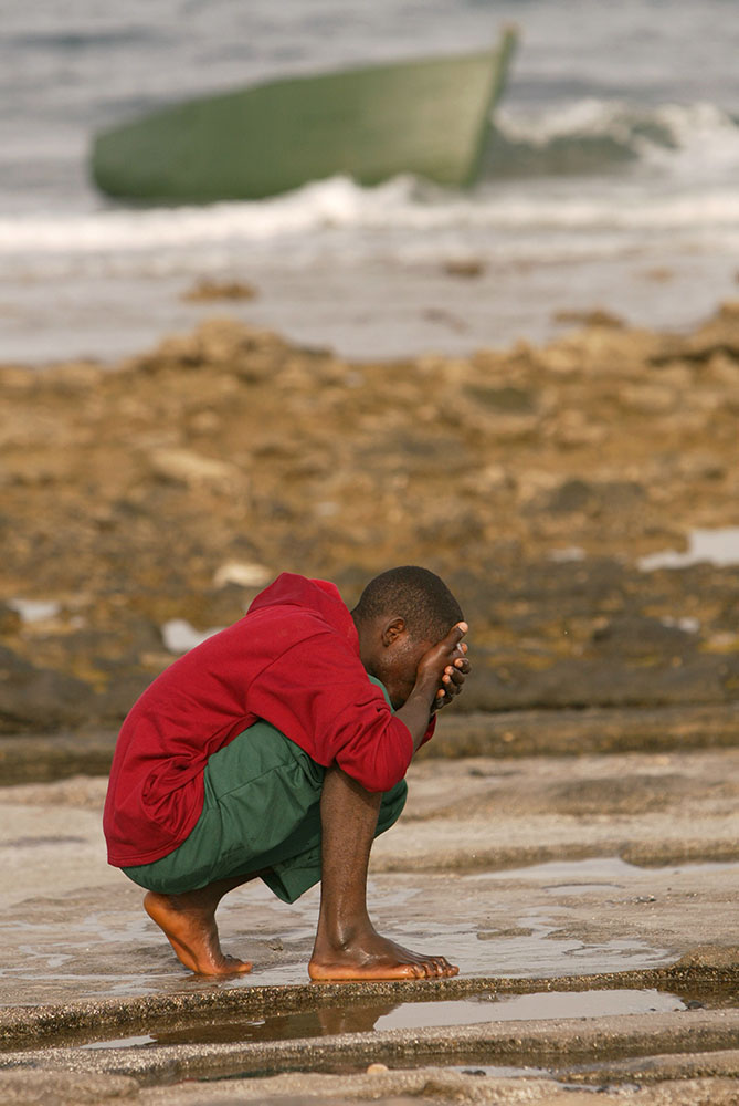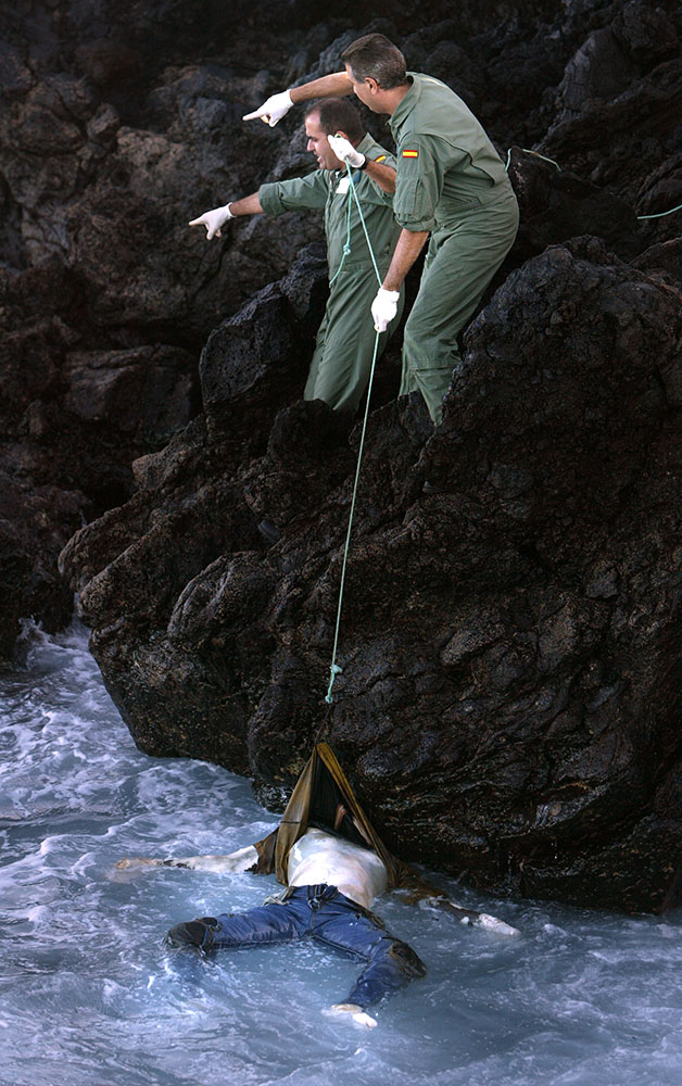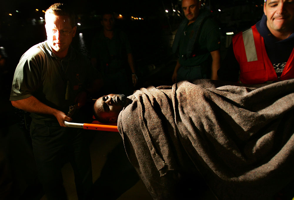 Over the last few years, I have been documenting the plight of thousands of people who risk their lives trying to reach the coasts of the Canary Islands, where I live, and I have continued to bear witness to the human tragedy which unfolds with striking regularity. The difficult voyage begins when they leave their countries of origin, usually Western Africa countries, devastated by hunger, war and exploitation. Even before reaching the African coast, many people die while crossing the desert. The sad news of their plight only becomes known through the testimony of relatives or companions who had better luck in their journey. It takes years for some people to reach the stage of setting off to cross the hundred kilometers of open sea that separate the African continent from the Spanish islands. They sail in fragile makeshift boats, less than six meters long. The majority of these vessels are intercepted and/or rescued by Spanish coast guard patrols or other rescue ships, though some overloaded makeshift boats capsize in the middle of the ocean. Still others become lost, and their boats stay adrift with the occupants condemned to a slow death if they are not found in time. Thousands of human beings feel obliged to carry out this dangerous journey, imposed by a cruel European filter.