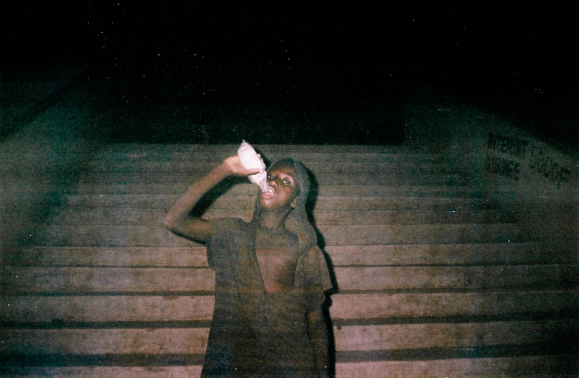 Au cours de mon troisième voyage (de février à avril 2015), j’ai réalisé́ des portraits d’enfants la nuit avec la complicité de trois des enfants avec lesquels j’avais déjà travaillé durant mes deux précédents voyages. Ils m’ont beaucoup aidé à réaliser ce projet ; aussi bien pour les prises de vue que pour les rencontres avec d’autres enfants. Ce travail correspond au dernier livret* (Livret 9).