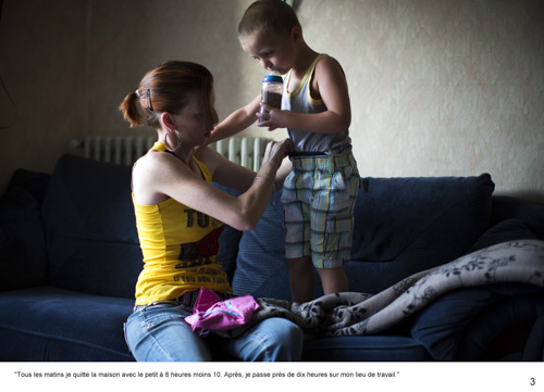 Levé avant l’aube comme la plupart d’entre eux, embarqué dans leurs galères de transport, d’horaires, d’organisation pour s’abriter, se nourrir, s’occuper de leurs enfants, j’ai pu photographier de l’intérieur ces vies minuscules, les explorer.
