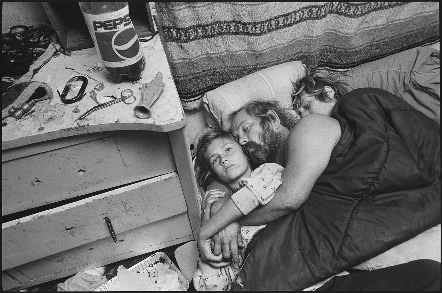 Laissés-pour-compte, prostituées, aliénés, gigolos, culturistes jalonnent ses photographies qui dressent le portrait fascinant et composite d’une Amérique claudicante et désenchantée. Obèse en tenue de gala se faisant lécher goulûment le nez par un chien minuscule. Photos de familles posant dans des appartements de misère. Gamine provocante, excessivement maquillée, fumant, en bikini, les pieds dans la piscine …