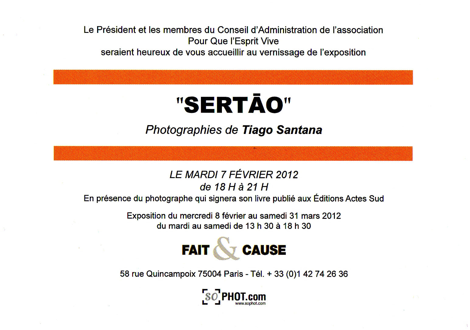 Un amour féroce lie l’artiste au lieu qui l’a vu naître. Féroce parce que nous ne trouvons pas la moindre trace de mièvrerie dans les photographies de Santana. Il y aurait même une certaine fierté à nous montrer ce Nordeste brésilien tel qu’il est. Tiago Santana n’apporte pas un message ni une ligne thématique déterminée. Cet artiste est comme sa terre natale : un volcan en puissance. Il n’a pas fréquenté les écoles d’art, les cours de photographie des universités parfois très illustres qui enseignent avec intelligence et ferveur « l’art de photographier ». Santana est allé chercher son art comme le demandait Gorki, dans « l’université de la vie ». »