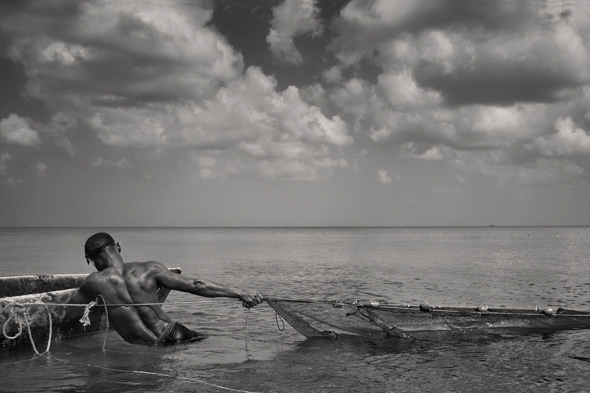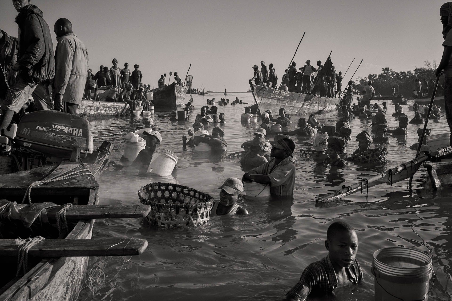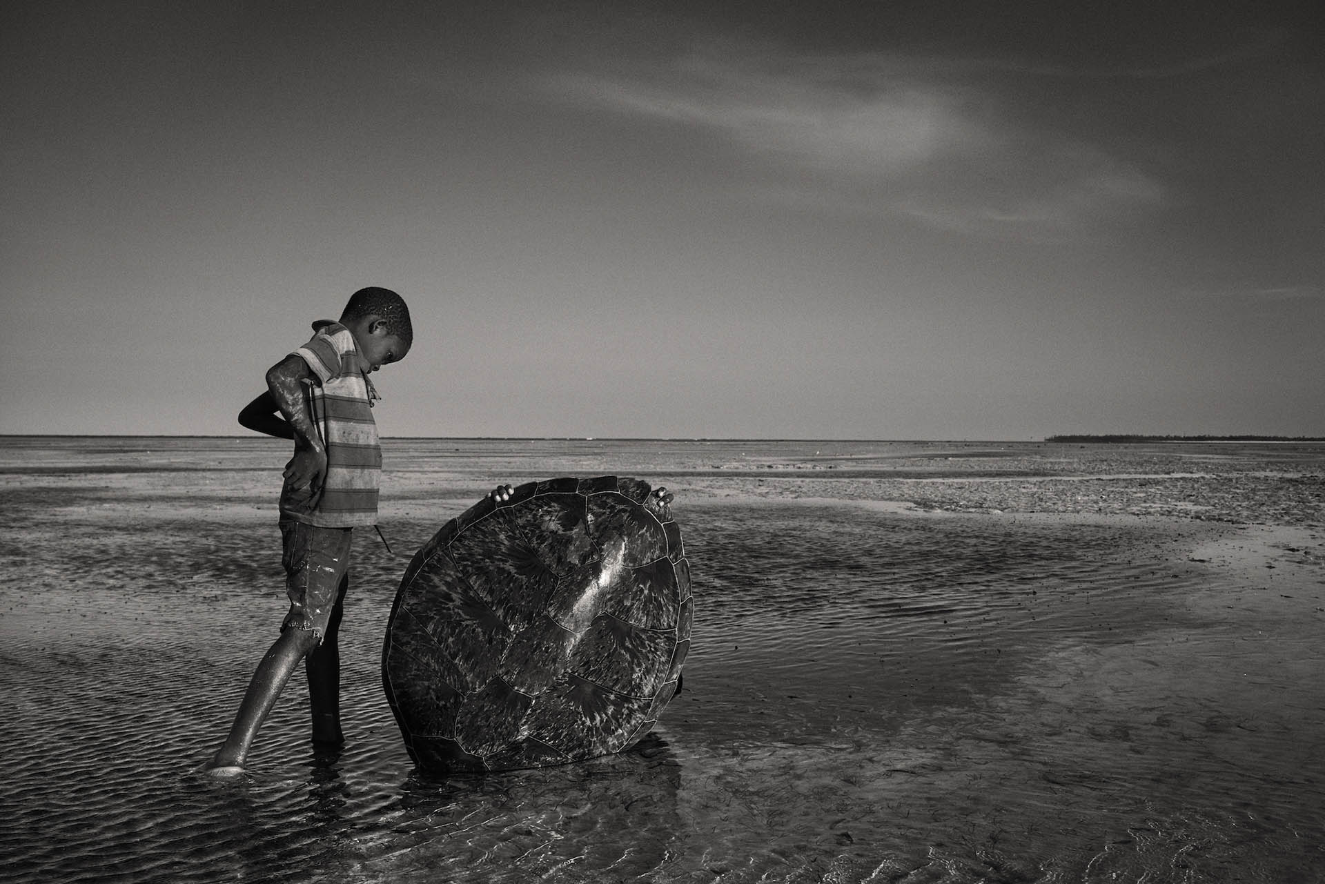 Le travail présenté ici s’intéresse au devenir de ces communautés côtières d’Afrique de l’Est, dont l’avenir semble aujourd’hui compromis. En effet, on constate partout dans cette région un effondrement dramatique des stocks de poissons, ainsi que des modifications du milieu dues au changement climatique. De méthodes de pêche traditionnelles qui avaient un impact limité sur l’environnement, on est passé en moins de vingt ans à une pêche industrielle pratiquée par des flottilles de navires usines étrangers. La pêche à la dynamite fait également des ravages, détruisant sans discrimination poissons et récifs coralliens. De grands projets énergétiques ou industriels, tels la construction d’un barrage hydroélectrique en amont du détroit de la Rufiji ou la construction de gigantesques terminaux portuaires au Kenya et en Tanzanie, menacent cette côte autrefois si riche.