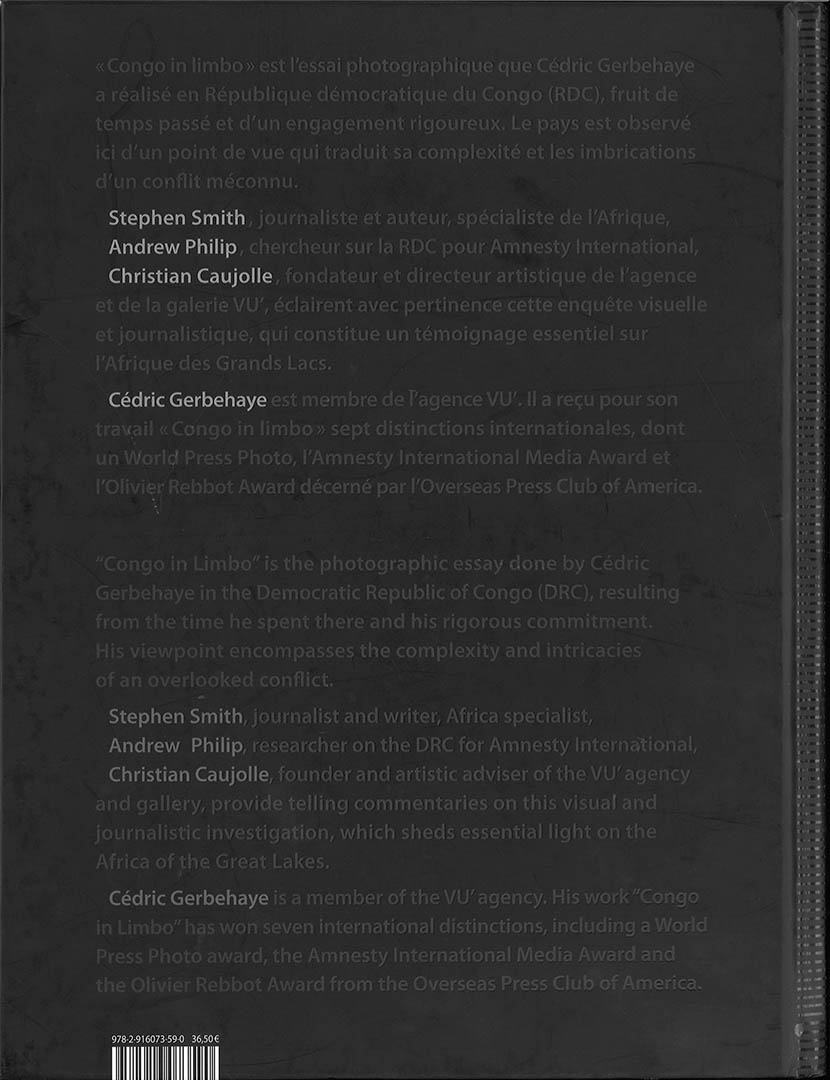 CONGO IN LIMBO : In the Democratic Republic of Congo, a decade of armed conflict has caused the deaths of more than four million people, the displacement of one million civilians and left the country in ruins. The population continues to suffer the consequences of such troubles: malnutrition and sickness yet also often fatal persecution from the militants who remain active, despite the peace agreements of 2008 and the formation of a national army. In Ituri and Kivu in the east, regions bordering upon Rwanda and Uganda where mining resources are coveted, rape has become a weapon of war and the recruitment of child soldiers is a huge problem. Faced with these disasters, the people of Congo only continue to survive; the book includes images of the day-to-day in Kinshasa, and life along the river Congo. With the dedication and precision of the great photographers of the past, Cédric Gerbehaye sheds light on this devastated country, so often forgotten by the international community. Stephen Smith’s accompanying text traces the history of the conflict, whilst Christian Caujolle describes the power of the photos, making them already an essential contemporary source of information on central Africa. Andrew Philip, researcher for Amnesty International, raises the issue of the human rights situation in the Congo.