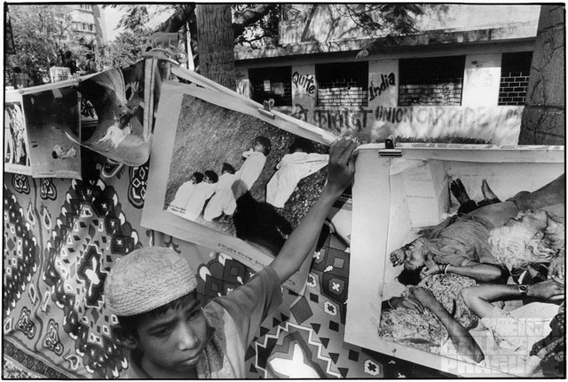 Quand il est arrivé à Bhopal le matin après la fuite de gaz de l’usine d’Union Carbide, Raghu Rai a vu une Inde bien diférente, douloureuse et traumatisée. Choqué et profondément boulversé, il a photographié l’horreur et capturé le témoignage d’une communauté traumatisée. A son retour à Delhi, Raghu Rai a publié sa photographie aujourd’hui célèbre « enterrement d’un enfant inconnu » qui a eu l’effet d’une bombe dans l’opinion mondiale.
