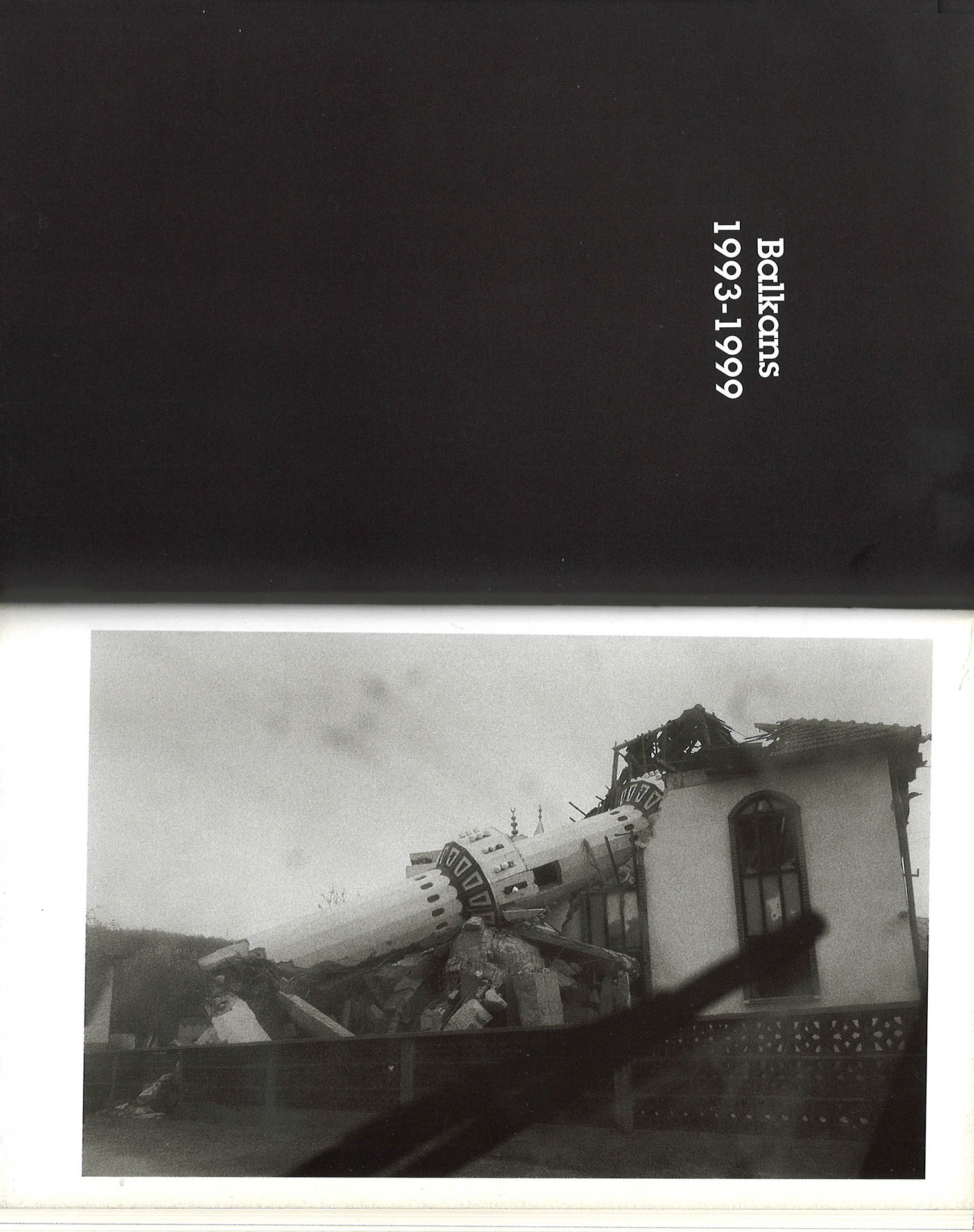Gilles Peress does not stop to say the horror of crimes commited in the name of the human race’s purity. He says it with his owns means, them of the photography which show, without effect, what it remains on the exil road, in a wreked village, about men and women who lived, worked, loved, gave birth, and who are now a heap of rotting bodies, bones whitenned by the sun.