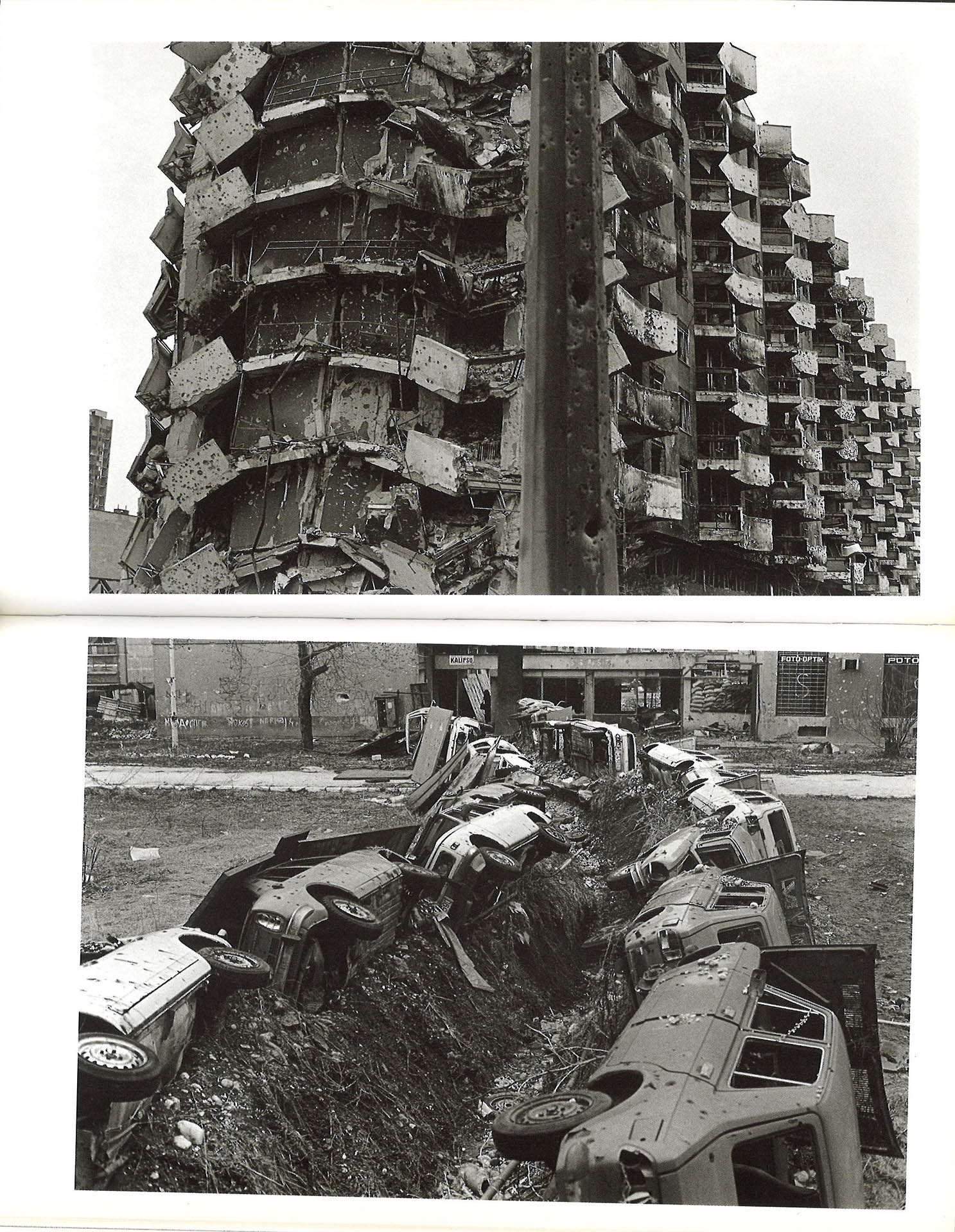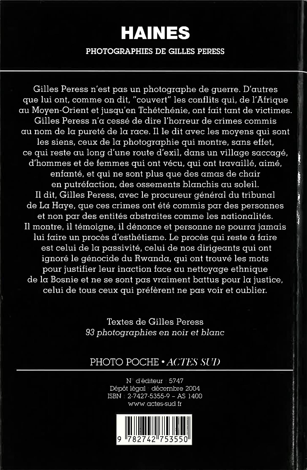 Gilles Peress nunca dejó de denunciar el horror de los crímenes cometidos en nombre de la purificación de la raza. Utilizando para ello su medio preferido, la fotografía, que muestra sin conveniencia alguna, lo que queda a lo largo de la ruta del exilio, en un pueblo saqueado, de hombres y mujeres que han vivido, trabajado, amado, y que hoy no son más que un montón de carne en estado de putrefacción, y de huesos calcinados al sol.