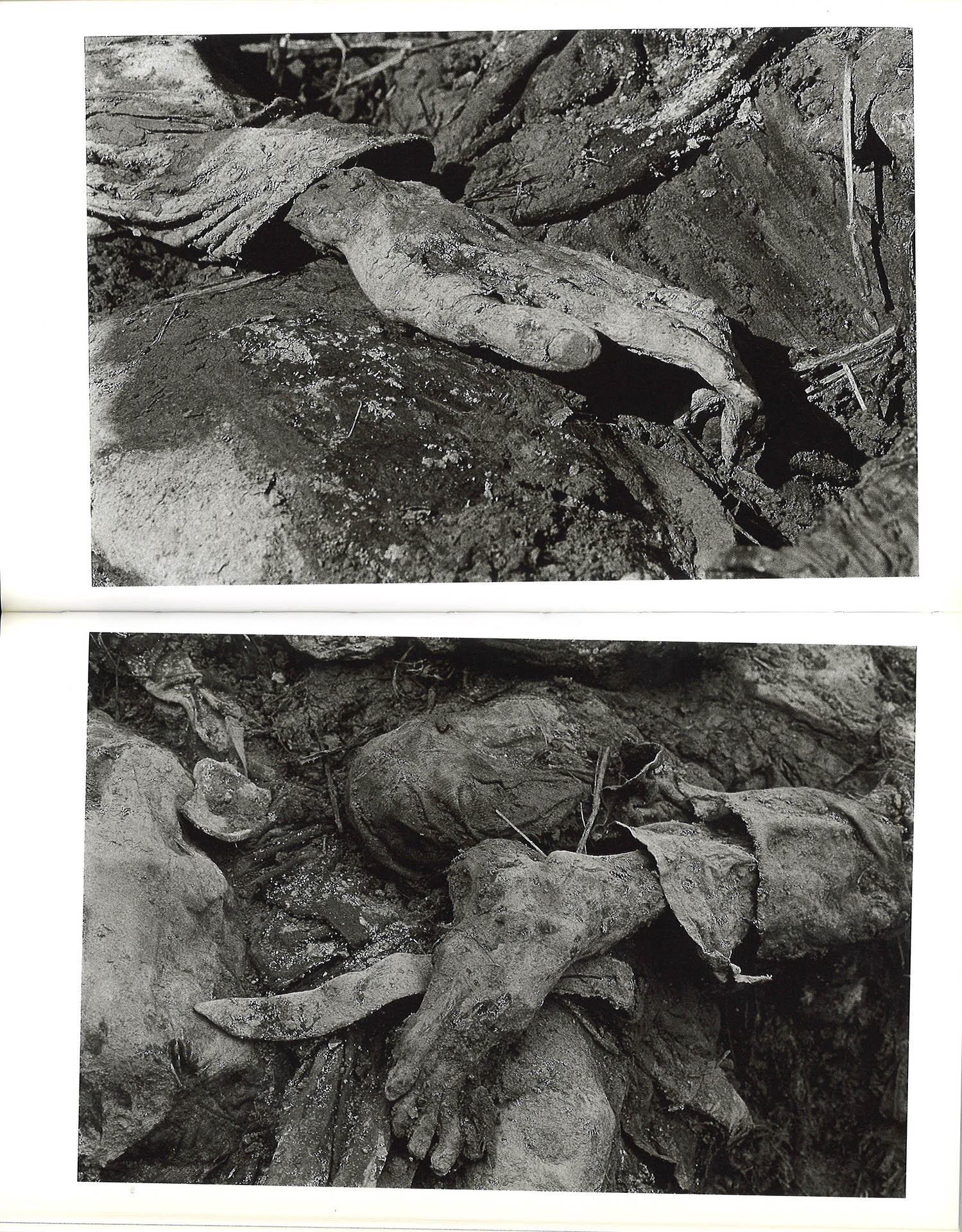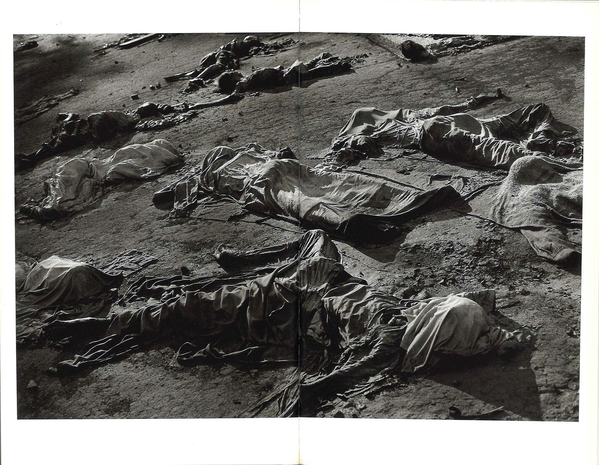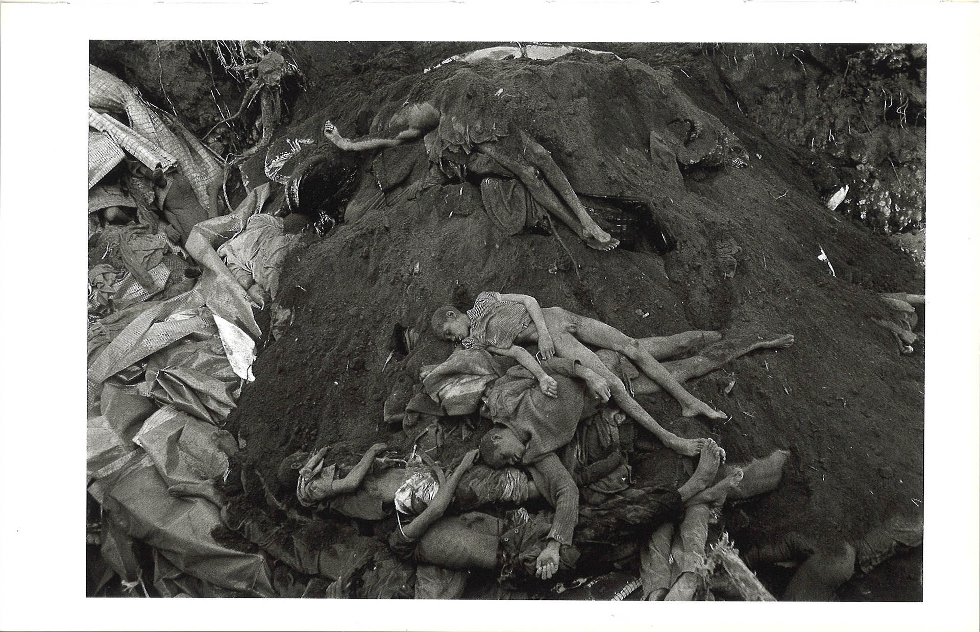 Gilles Peress n’a cessé de dire l’horreur de crimes commis au nom de la pureté de la race. Il le dit avec les moyens qui sont les siens, ceux de la photographie qui montre, sans effet, ce qui reste au long d’une route d’exil, dans un village saccagé, d’hommes et de femmes qui ont vécu, qui ont travaillé, aimé, enfanté, qui ne sont plus que des amas des chair en putréfaction, des ossements blanchis au soleil.