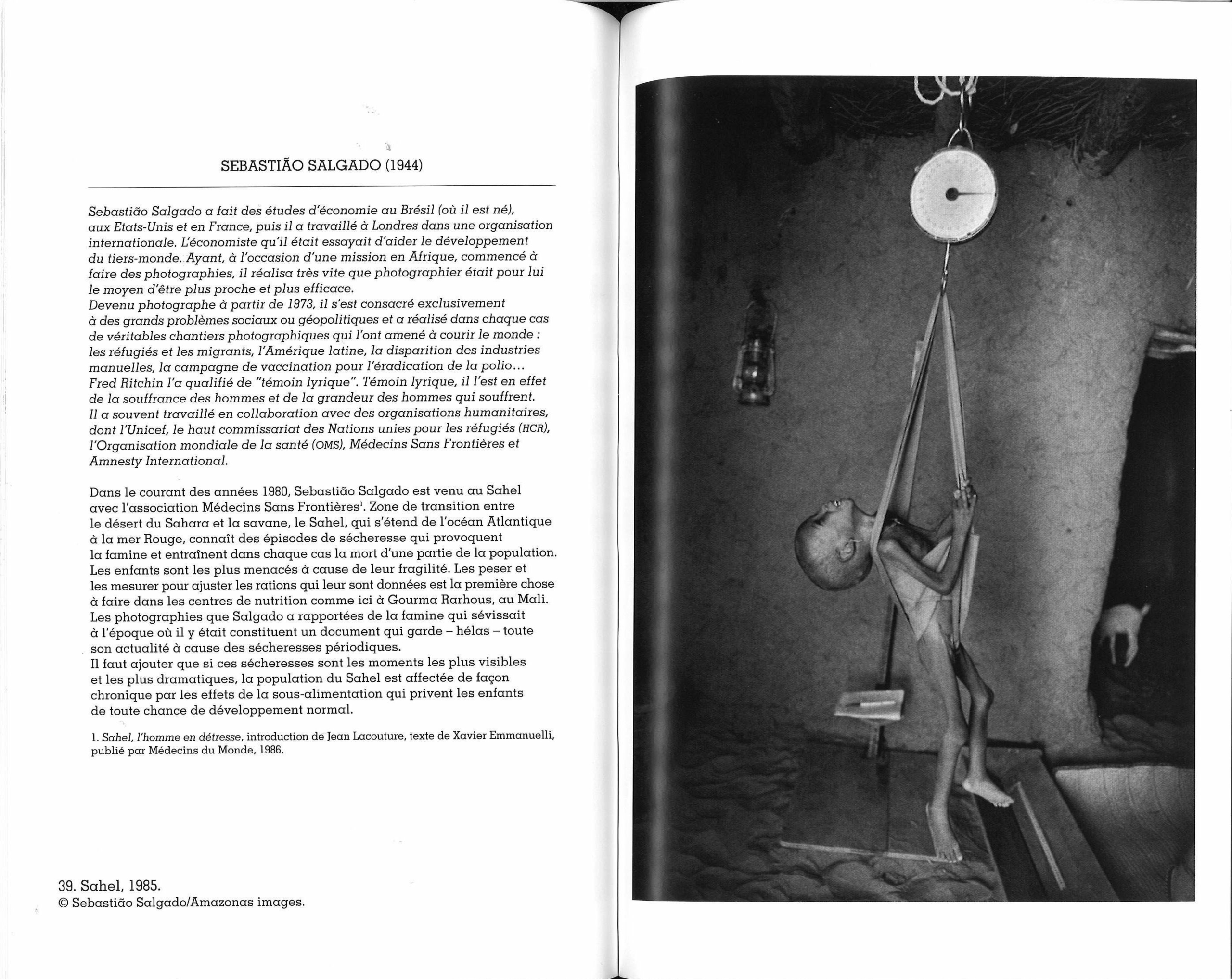 T. Annan – E. Atget – J.E. Atwood – R. Ballen – D. Baltermants – W. Bischof – R.Burri – H. Cartier-Bresson – A.V. Casasola – M. Chambi – Chien-Chi Chang – J.-L. Courtinat – B. Davidson – R. Depardon – Hien Lam Duc – W. Evans – M. Franck – P. Fusco – M. Giacomelli – D. Goldblatt – S. Greene – J. Grison – E. Haas – L. Hine – C. Killip – J. Koudelka – M. Kovacevic – D. Lange – M.E. Mark – D. McCullin – S. Meiselas – W. Miller – L. Model – S. Moon . C. Nègre – M.-Nègre – P. Pellegrin – G. Peress – R. Rai – A. Reininger – G. Rejlander – E. Richards – J.A. Riis – G. Rodger – S. Salgado – A. Sander – D. Seymour, dit Chim – B. Shahn – F. Sheikh – M. Silverstone – K. Sluban – W.E. Smith – P. Strand – L. Towell – G. Turine – A. Van Denderen – S. Vanfleteren – Weegee – R. Vishniac – P. Zachmann – F. Zizola – Documents complémentaires : Collection J. Allen – Anonyme – Affiche de la charité.