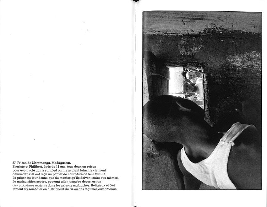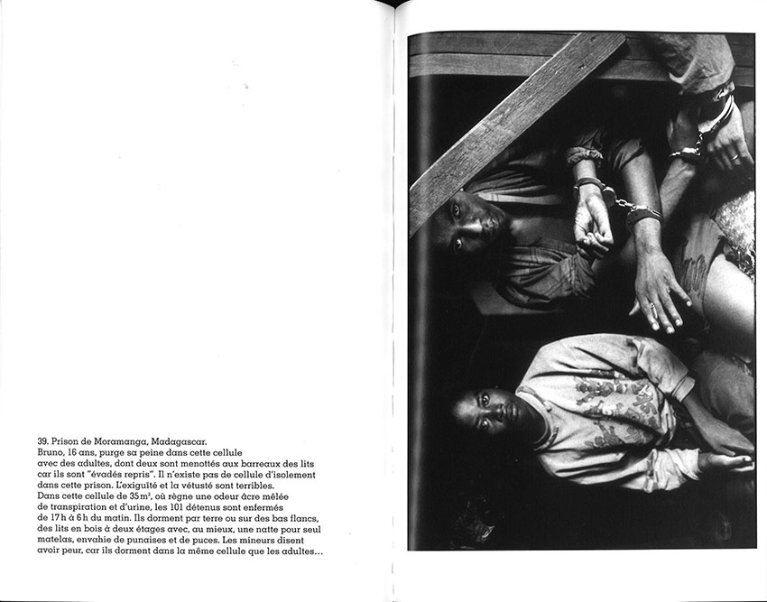 « J’ai voulu témoigner avec mon regard de photographe de l’état de la justice juvénile dans onze pays aux caractéristiques géopolitiques très différentes : pays en paix et pays en guerre, états de droit et régimes autoritaires. Mais, d’un continent à l’autre, on ne peut qu’être frappé par la ressemblance de certaines scènes : mêmes cachots ou cellules d’isolement, même détresse, même volonté des matons de briser la résistance des jeunes détenus. J’ai été portée par l’idée d’amener nos regards à l’intérieur de ces lieux de détention et de porter leurs regards à l’extérieur. J’ai voulu redonner à ces jeunes la dignité qui est la leur, briser le silence dans lequel ils se trouvent et surtout rompre leur isolement. Un reportage pour les sortir de l’ombre… »