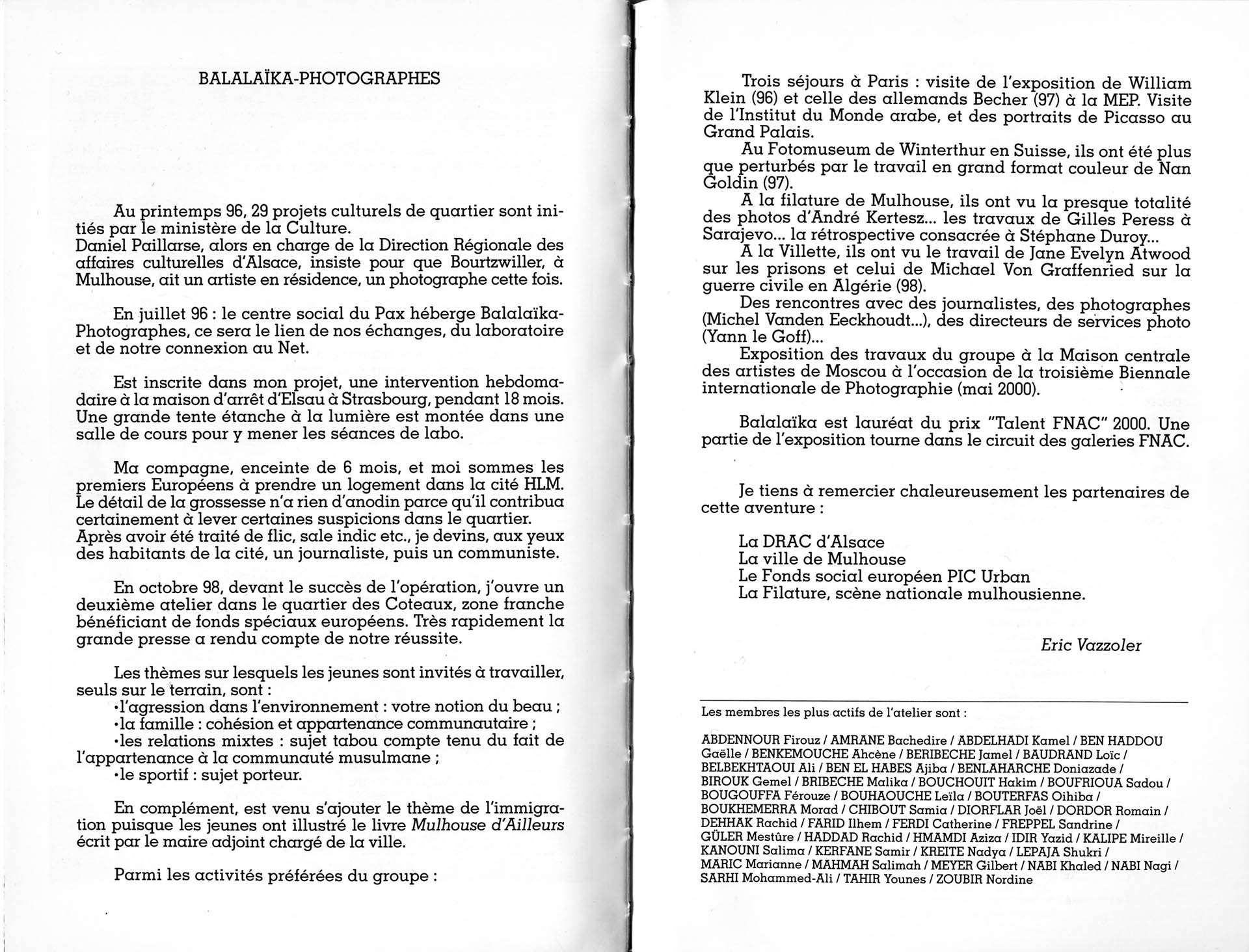 Un atelier à Mulhouse avec Eric Vazzoler