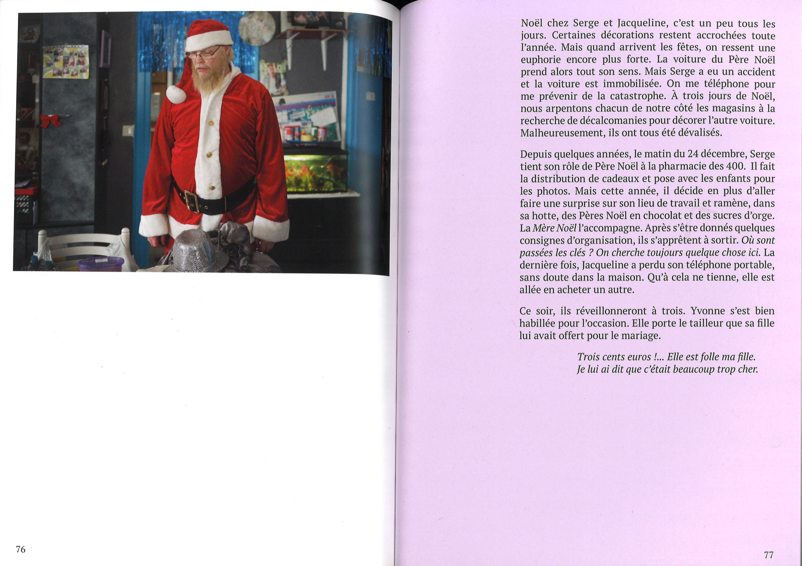 Je suis accueillie dans le quotidien de ce couple au langage spontané, aux gestes naturels, aux rituels singuliers. Un petit monde plus organisé qu’il n’y parait, où il existe une marraine des chiens et une voiture du Père Noël… Derrière des apparences difficiles, une vie tendre et lumineuse, parsemée d’humour et pleine de pudeur.