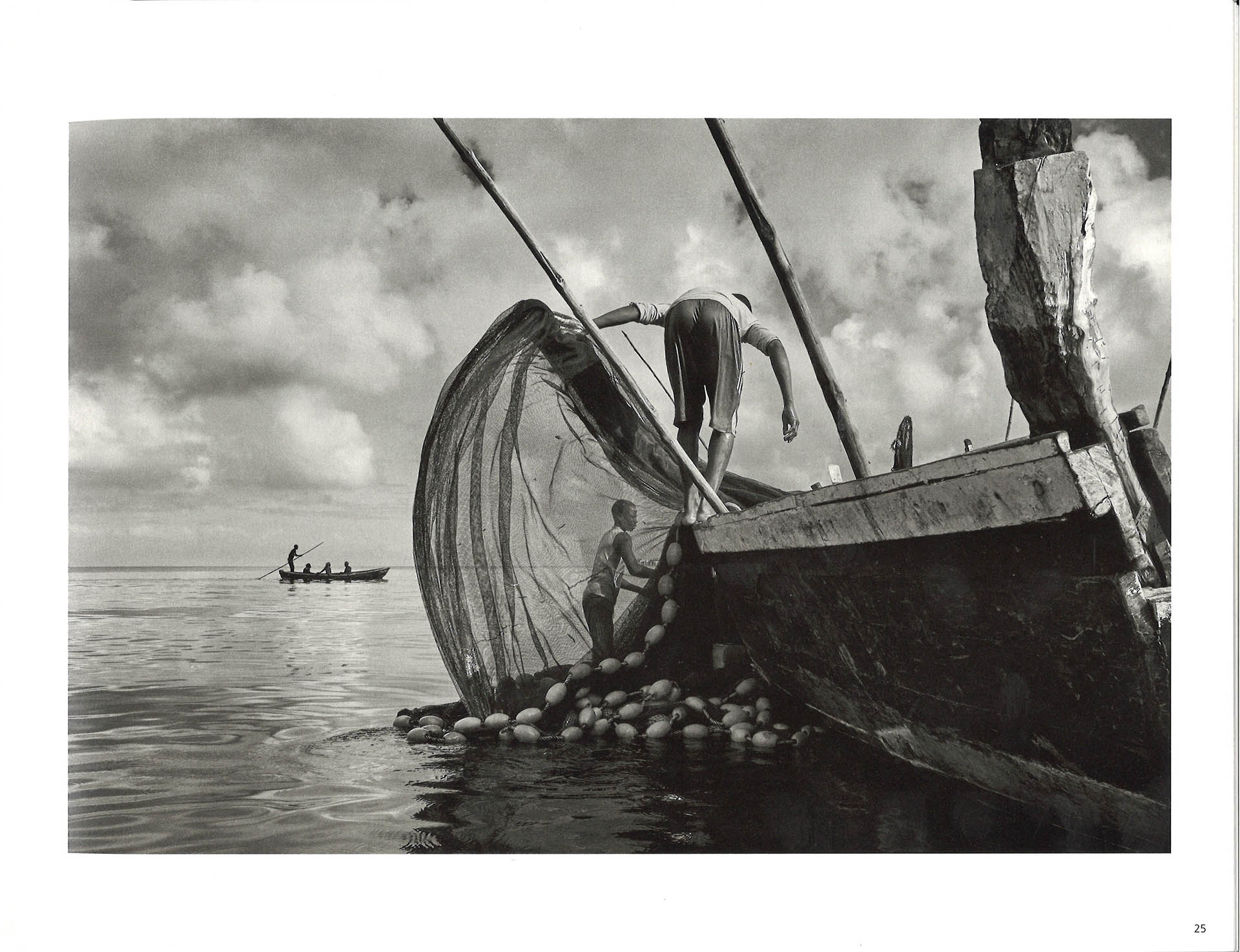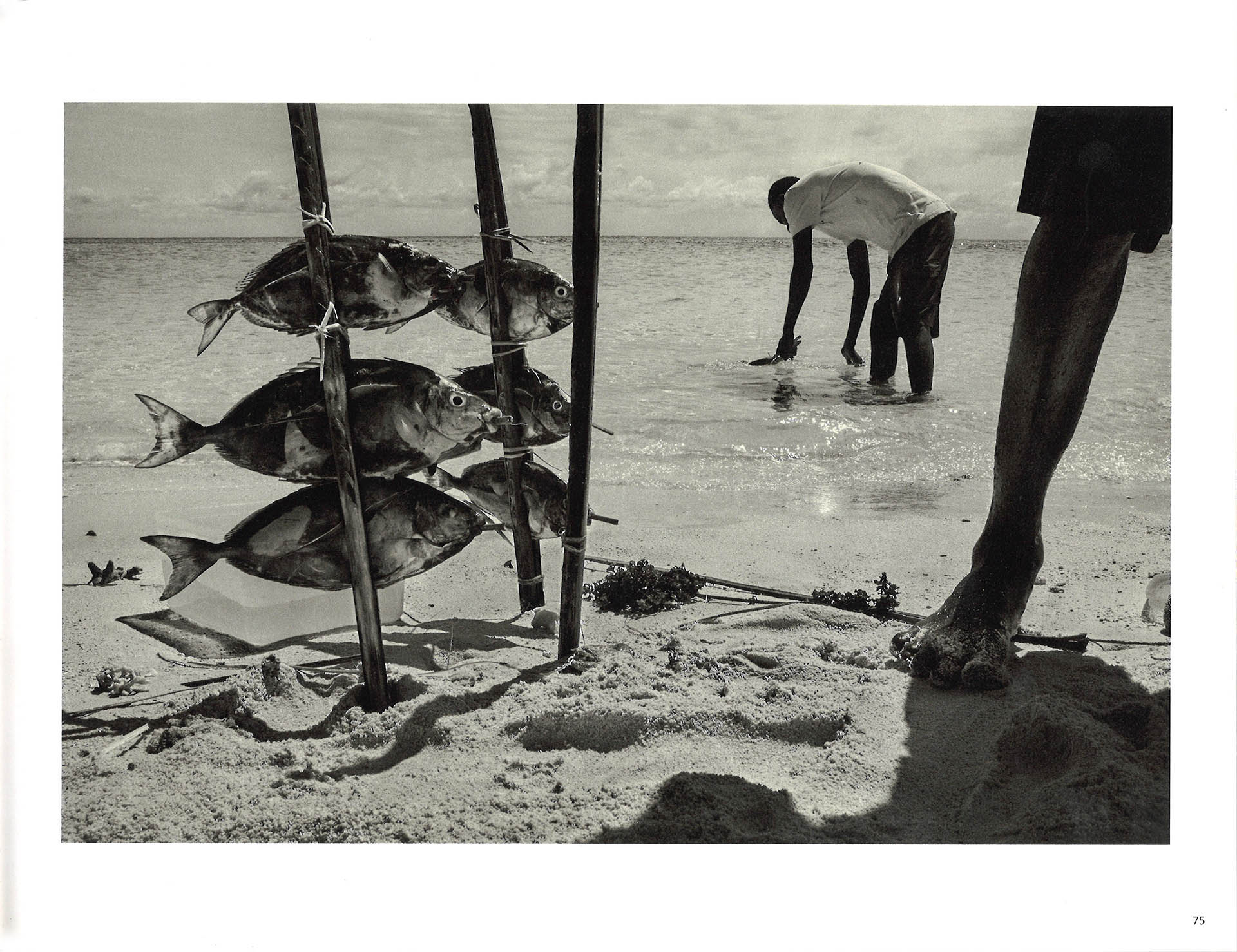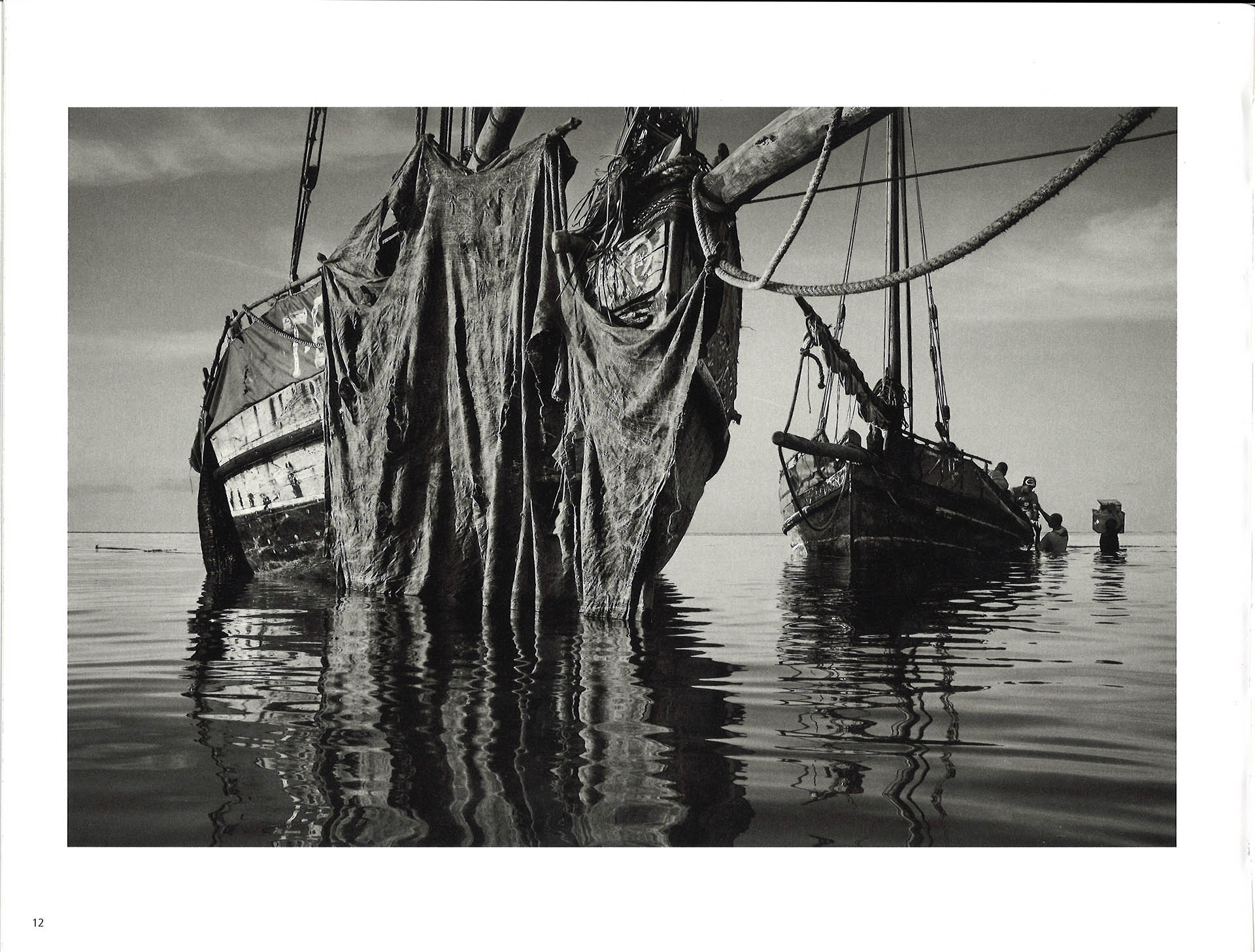 Du Cap de Ras Kamboni au sud de la Somalie jusqu’au Mozambique en longeant le Kenya et la Tanzanie s’étirent, en un léger golfe saupoudré d’îles au sud par les Comores et refermé par la paume ouverte de Madagascar, les côtes swahilies… On y commerce depuis la nuit des temps, avec l’Inde, la Péninsule arabique ou Madagascar. Toutes sortes de marchandises, de la canne à sucre, du mil, du clou de girofle, de l’ivoire. Des cornes de rhinocéros. De l’indigo. Des carapaces de tortues. Des esclaves païens, capturés loin à l’intérieur des terres et que les musulmans de la côte méprisent. Les images de Gilles Nicolet suivent au plus près, pas après pas, la forme de la côte. On y croise, pêle-mêle, des hommes, des femmes, des enfants, des bateaux, des poissons, des araignées. On a l’impression que le photographe n’a qu’à regarder autour de lui pour que l’objectif capture un moment de beauté. Les photographies fouillent le temps, et le spectateur ne peut s’empêcher de se demander s’il est face à des souvenirs lointains ou à des clichés d’aujourd’hui tant la beauté de ces scènes et de ces personnages est au-delà du présent.